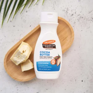 HUILE POUR LES MARQUES EXTENSIBLES : L’huile de massage au beurre de cacao de Palmer aide à réduire l’apparence des vergetures, apaiser la peau sèche et procurer un regain d’hydratation de 48 heures. Sans parfum.
