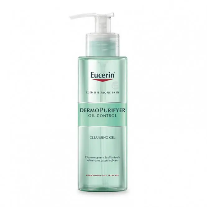 EUCERIN DermoPure Gel Nettoyant élimine efficacement et en douceur l’excès de sébum, tout en enlevant les impuretés et le maquillage, grâce à sa formule sans savon avec 6% de Tensioactifs Amphotères.