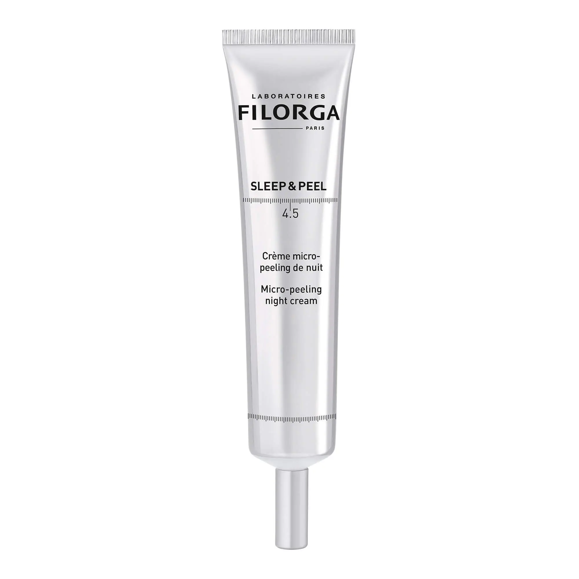 Crème de nuit micro peeling anti-rides Sleep&Peel 4.5 des Laboratoires Filorga, inspirée des peelings professionnels, qui stimule le renouvellement cellulaire, pour un effet peau neuve dès le 1er réveil !