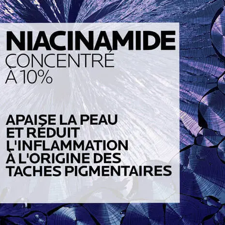 Sérum anti-taches à la niacinamide tous types de peaux. Corrige et prévient l’apparition des taches pigmentaires. Restaure l’éclat de la peau. Haute tolérance.