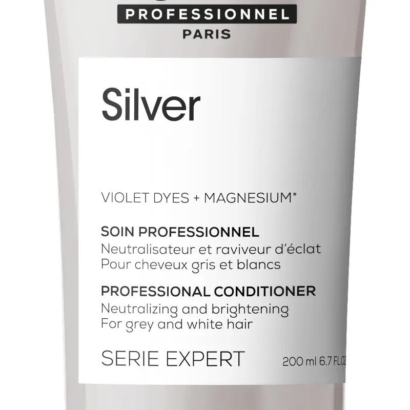 Tonifiez et nourrissez les cheveux gris, argentés et platine avec l’Après-Shampooing Silver Serie Expert de L’Oréal Professionnel. Cet après-shampooing est infusé de pigments violets et bleus pour contrer et neutraliser les tons cuivrés, jaunes ou orange pour une couleur qui semble rafraîchie et renouvelée. Cette formule hydratante permet une hydratation en profondeur tout en accentuant la brillance pour un fini de qualité professionnelle. Des céramides et de l’huile de babassu s’associent pour réhydrater tout en fortifiant la structure des cheveux pour aider à prévenir les cassures et les dommages. Cette formule légère hydrate les cheveux pour leur conférer une brillance saine sans les alourdir. Maintenez l’éclat de vos cheveux blonds clairs ou argentés entre vos visites au salon avec cet hydratant tonique, qui gardera votre couleur fraîche plus longtemps !