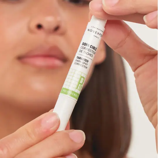 Avec son applicateur pinceau innovant, le Soin Ciblé Correcteur de Taches agit en CORRECTION et PRÉVENTION de toutes les taches pigmentaires (lentigos, mélasma, hyperpigmentations…)