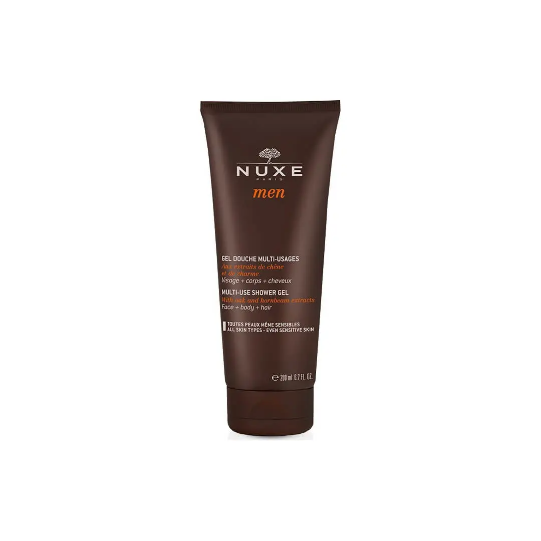 Nuxe Men Gel Douche Multi-Usages 200 ml est un gel moussant pour hommes qui nettoie en douceur le visage, le corps et les cheveux.