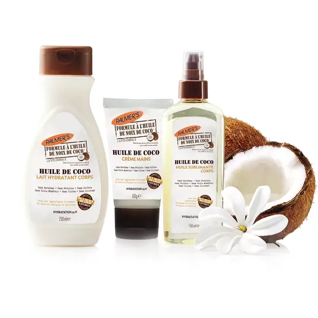 Appliquez l’Huile de Noix de Coco Huile Sublimante Corps de Palmer tous les jours après votre douche.